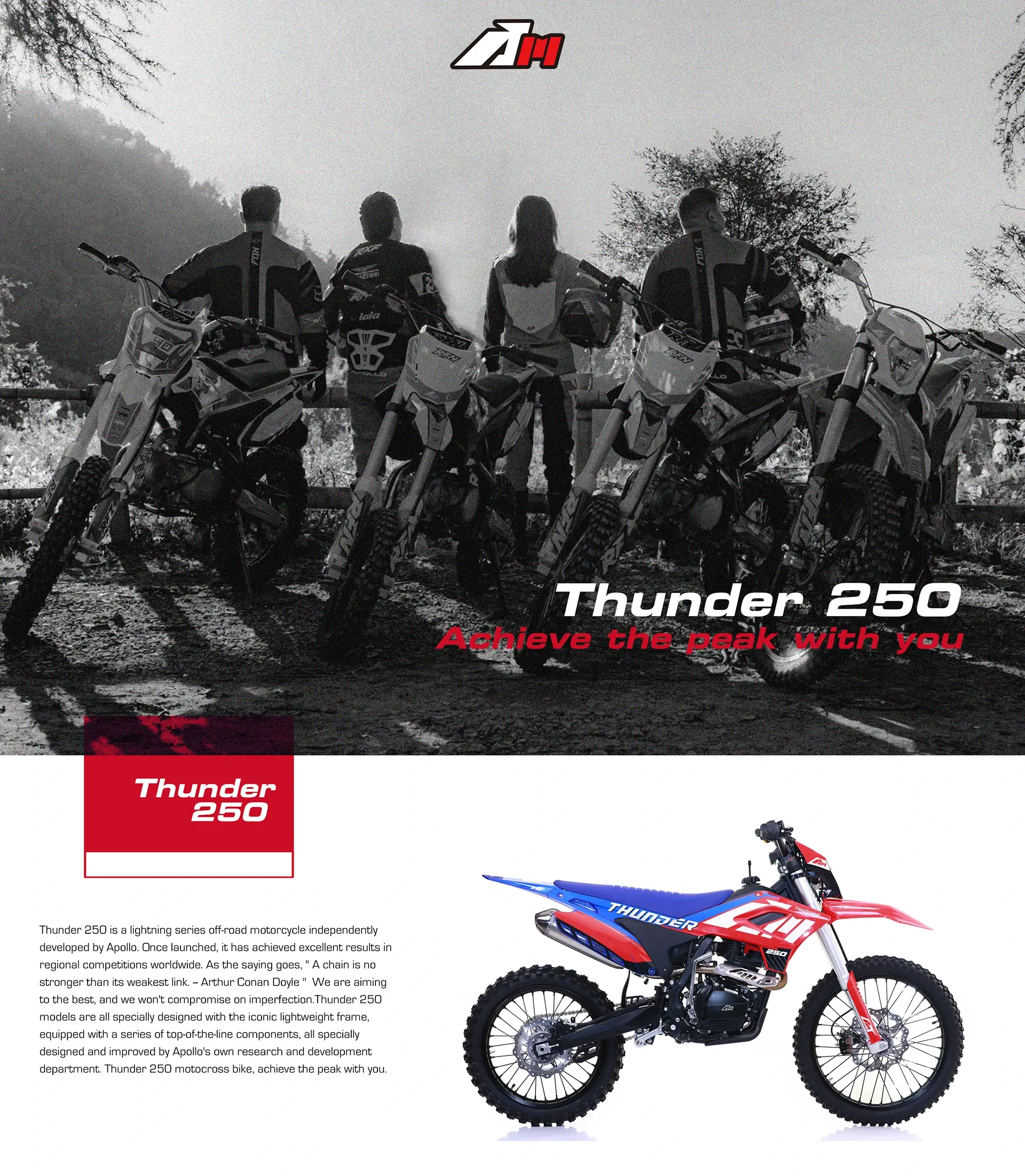 APOLLO stands at the forefront as a top-tier manufacturer specializing off-road motorcycles, with the aim to spread its network worldwide. Join hands with our fantastic team. You can get instant quotes and order deliveries with the best quality products.