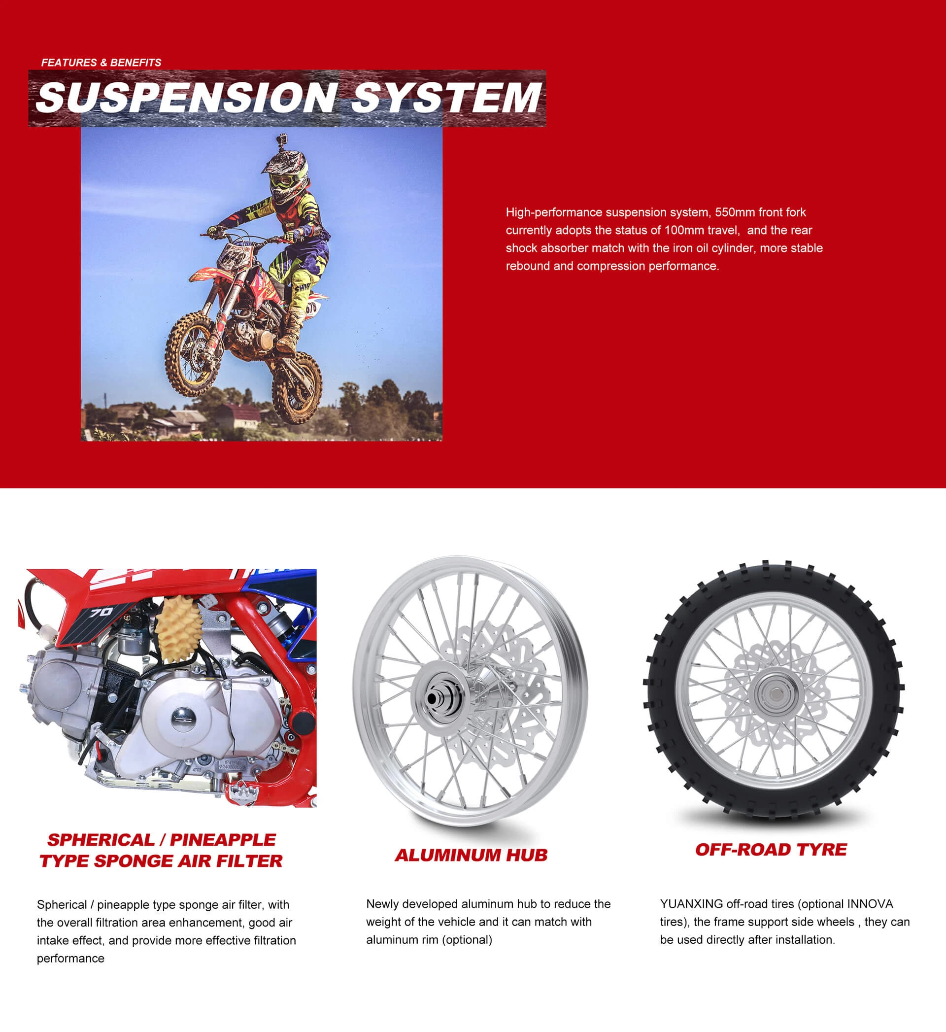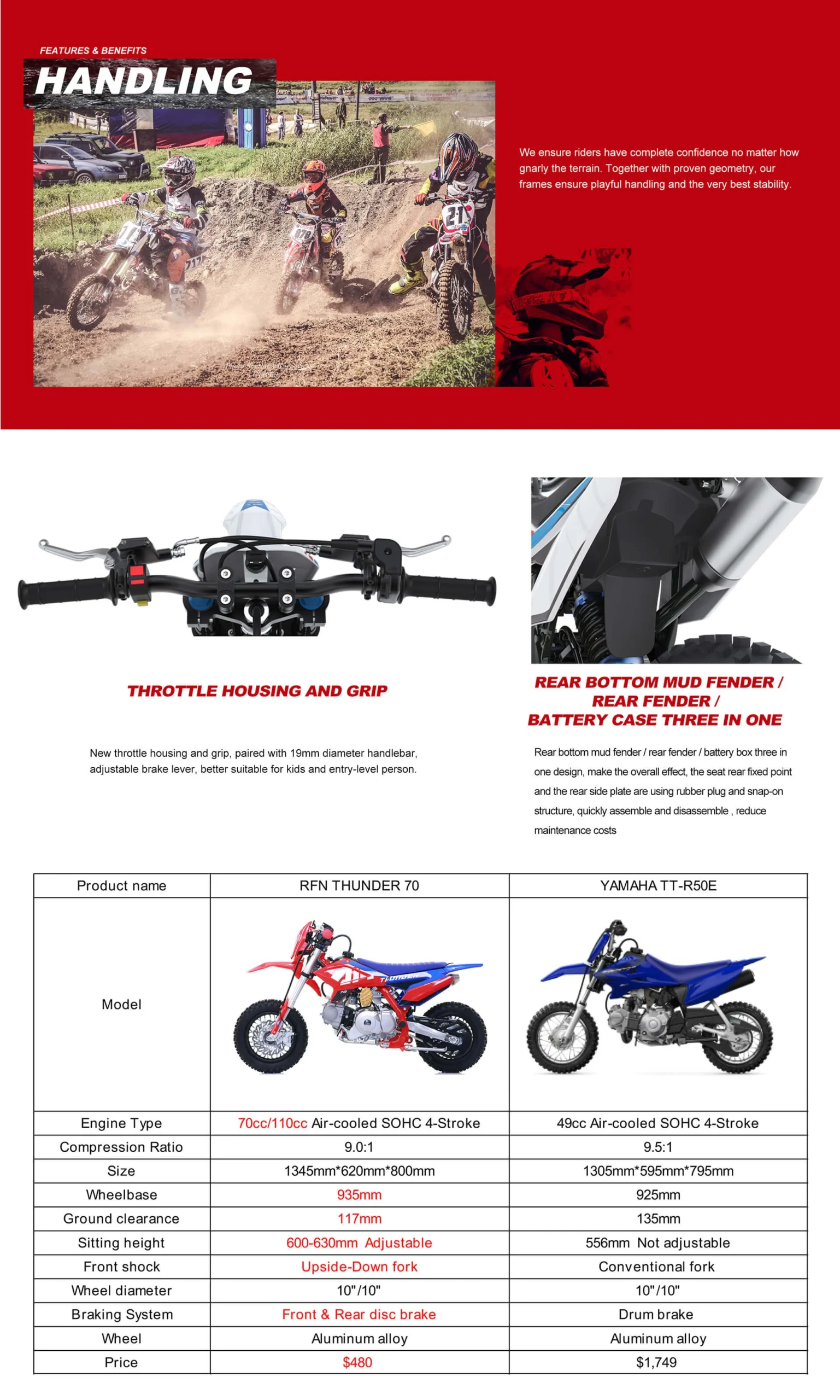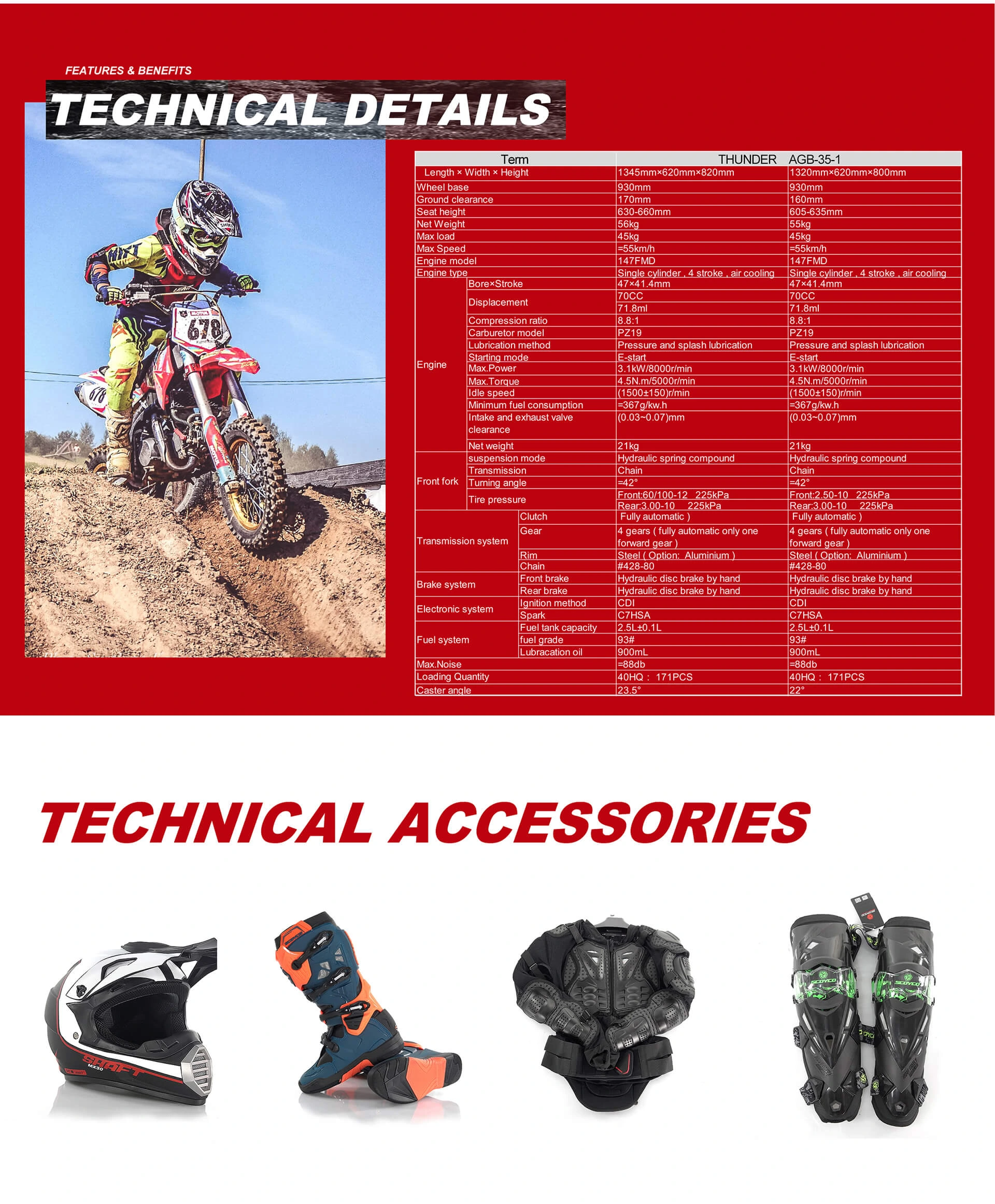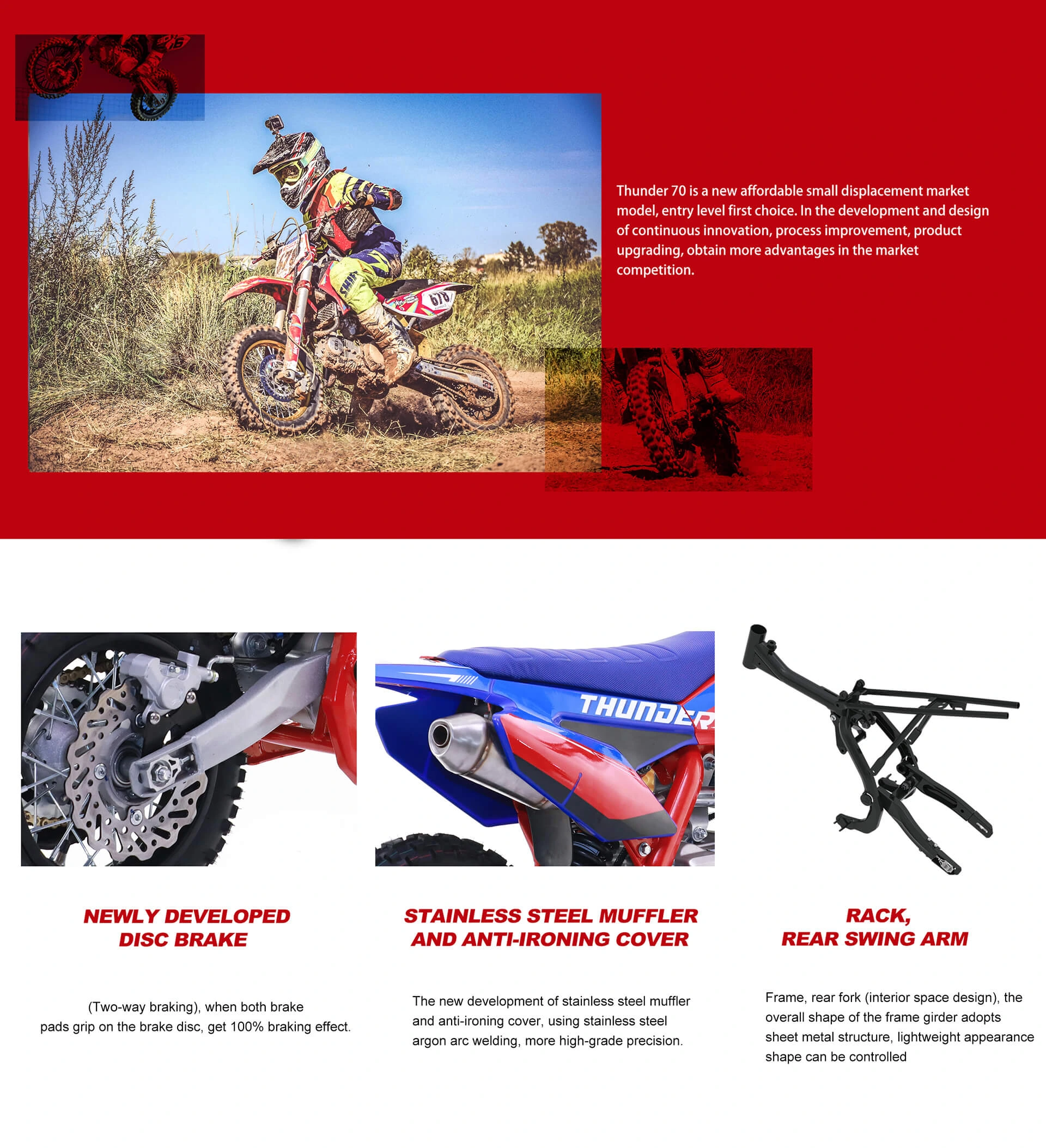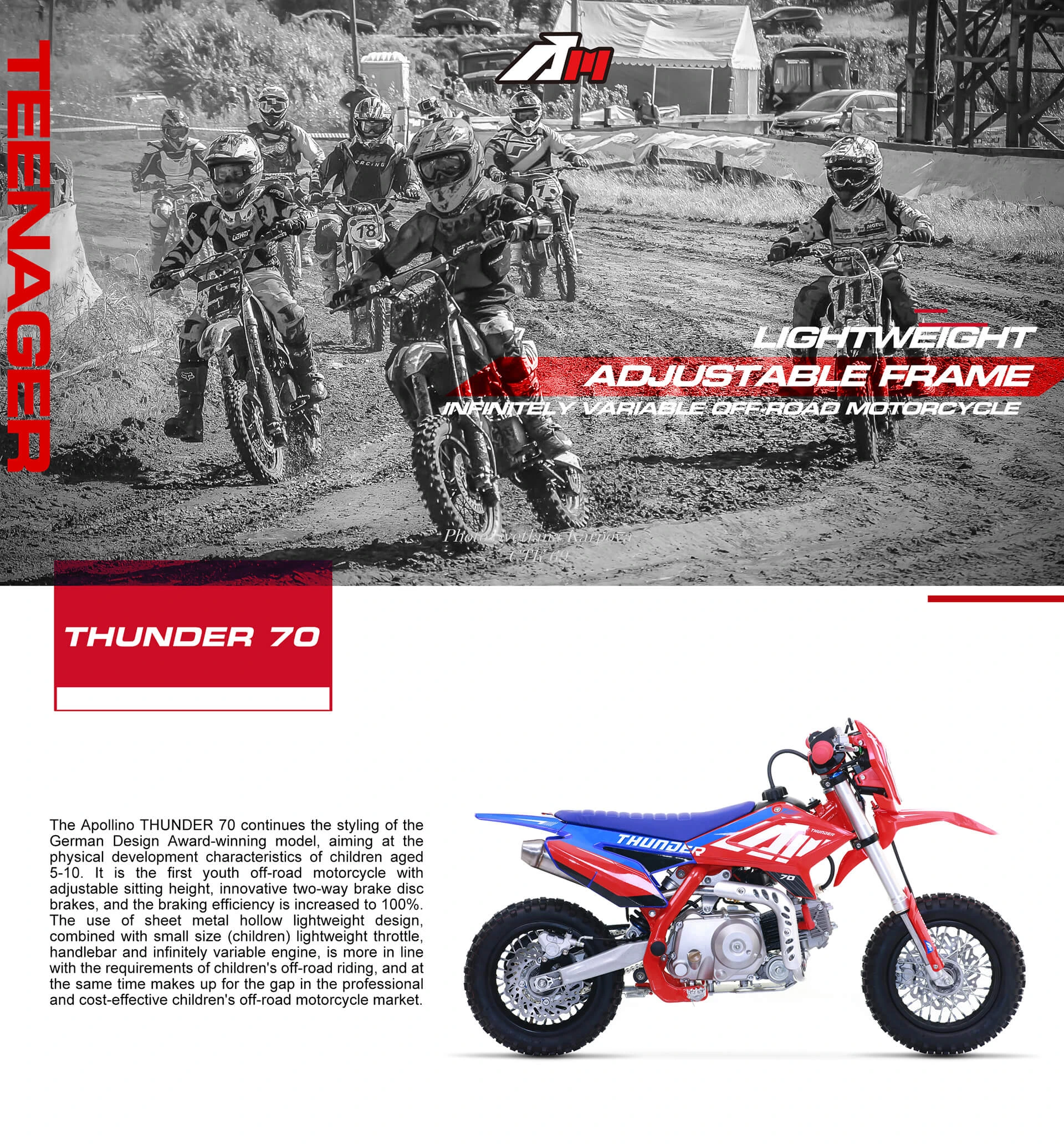 AM THUNDER 70cc 110cc Adult Lightweight Adjustable Frame Dirt Bike For Riding Training