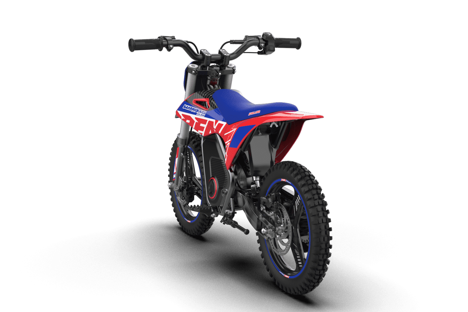 The WarriorKids Children’s Electric Motocross Bike prioritizes safety with custom-developed off-road anti-slip tires and a competition-level suspension system.