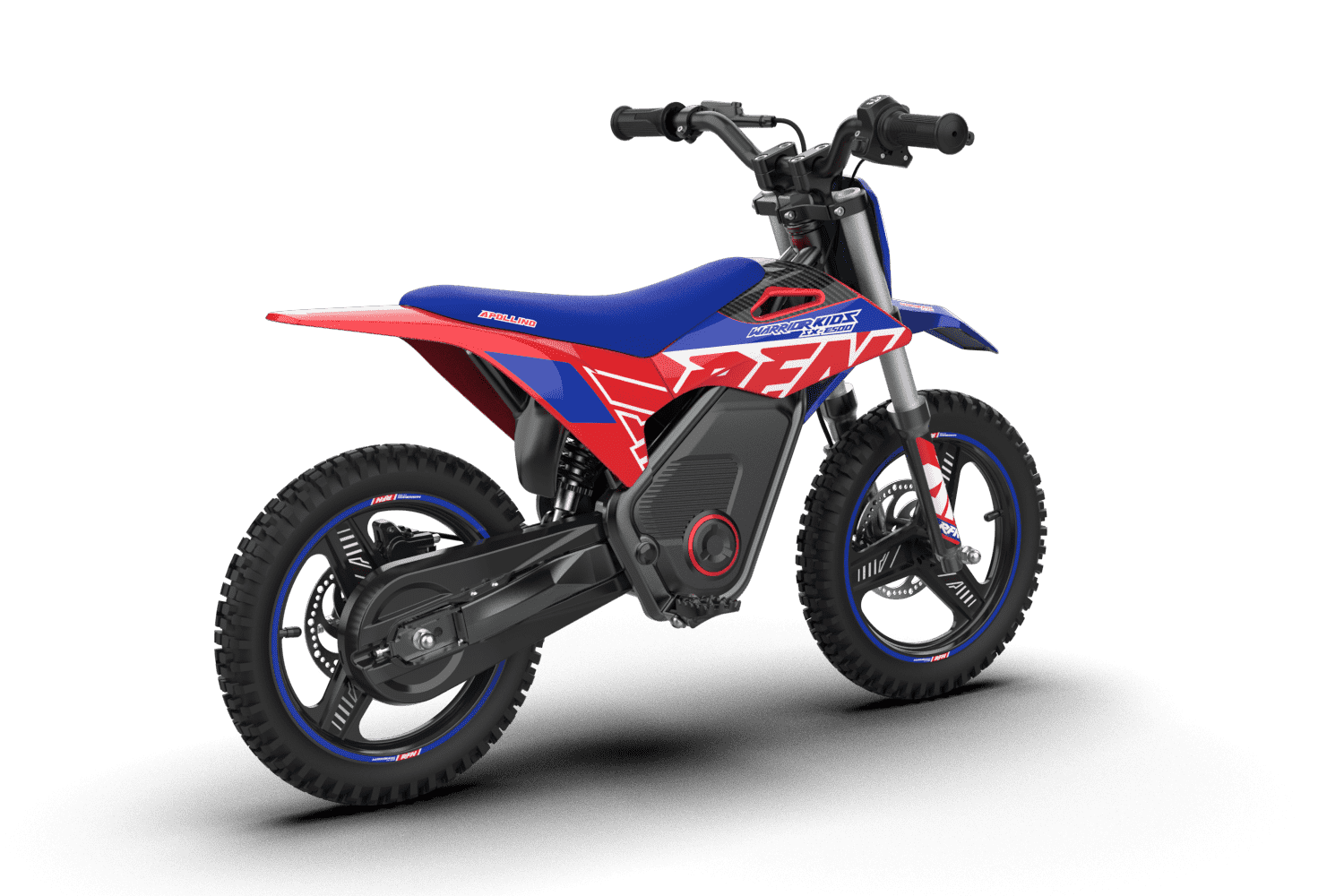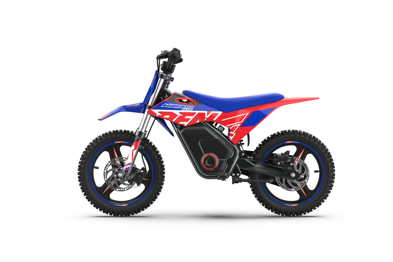 RFN Warrior Kids SX-E500 Dirt Bike is the most advanced one for the toughest of the rides, catering to energetic 8-year-olds. Features including 140mm Front and Rear Hydraulic Discs and a specialized system for Emergency Power Off, make sure the kids remain safe even during the learning phase. The three-speed limiter makes these bikes adaptable for kids of varying ages from 4 to 8 y/o.